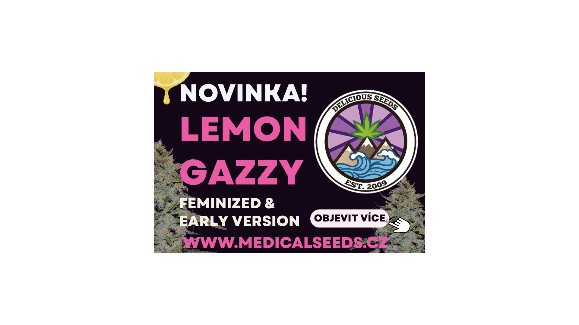 Je to tady! Šlechtitelé z Delicious Seeds vypustili na trh svou nejnovější bestii. Lemon Gazzy vznikla křížením prvoligové OG genetiky a Sour Diesel. 🌱
